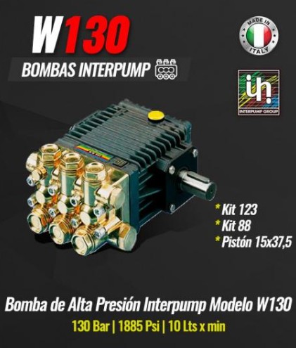 Bomba de alta presión italiana con culata en Bronce para un mayor durabilidad y rendimiento en sus equipos, esta bomba ofrece 1885 PSI con 10 litros x minuto.